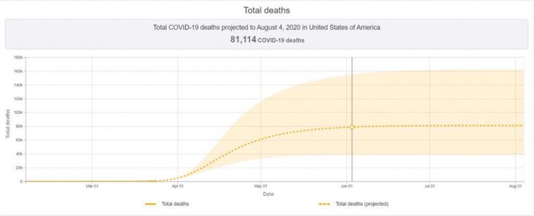 華盛頓大學所的新研究預測,直到8月初,全美因武漢肺炎而死亡的人數將超過8萬人,而加州的死亡人數將超過6千人。