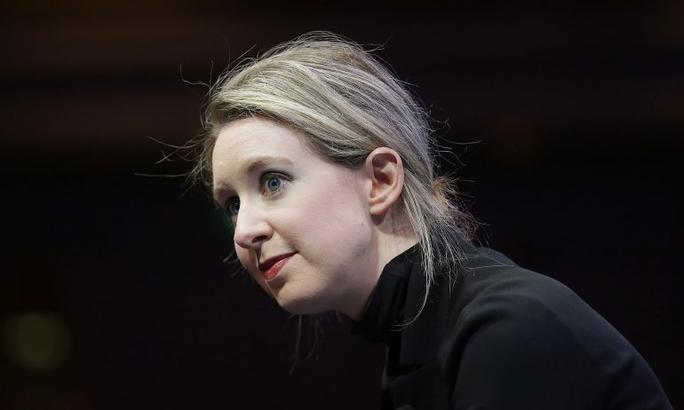 在 2003 年,荷姆斯創辦了 Theranos,目標是要革命血液檢測業界。Theranos 得到廣大的媒體報導,並收到超過七億的投資,基於投資人相信他們已經發明一個用一根手指的血就能做上百種實驗的機器。
