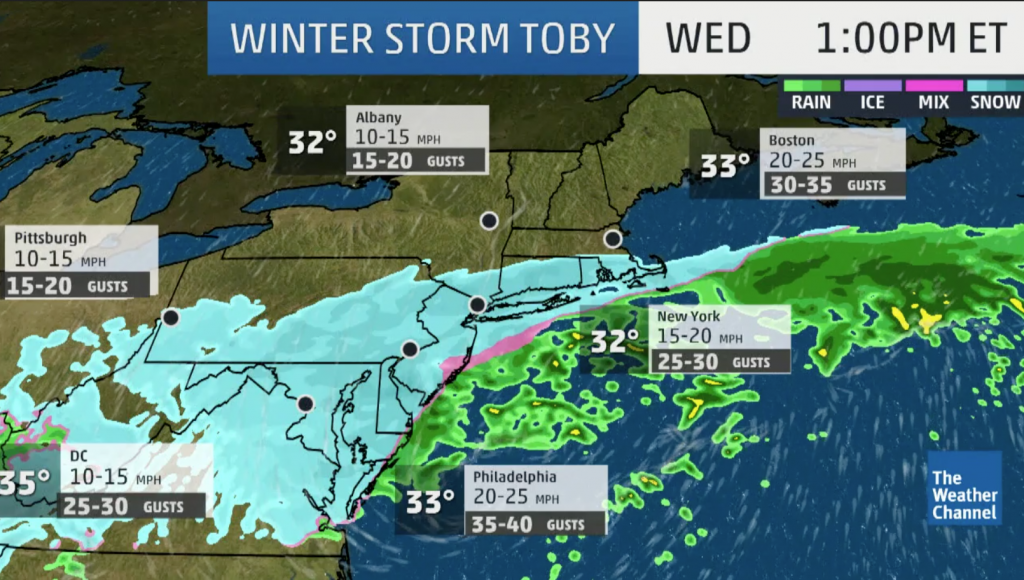 星期二,冬季風暴Toby來襲,已影響中大西洋地區(mid-Atlantic)、東北部。