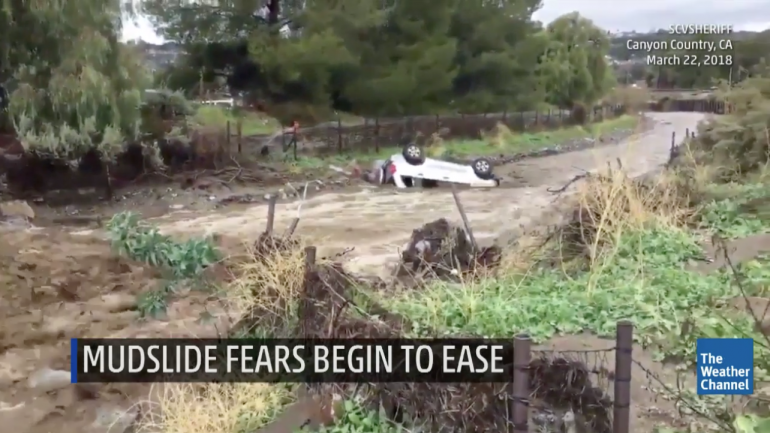 星期四,太平洋暴風侵襲南加州。加州Santa Banbara宣布部分地區居民強制撤離,因為當地曾被野火(Thomas、Sherpa野火)燒過,在大雨過後可能引發土石滑動及淹水。