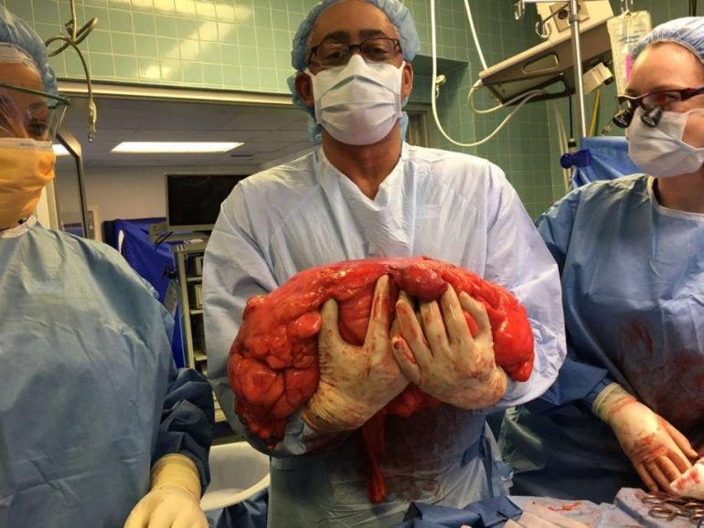 看完CAT掃描後,醫生們認為腫瘤重約12磅。腫塊被鑑定為脂肪肉瘤,脂肪肉瘤是一種生長在脂肪組織中的罕見癌性腫瘤。然而,在去除腫瘤的手術過程中,醫生們驚呆地發現腫瘤是「最初估計的三倍大」。