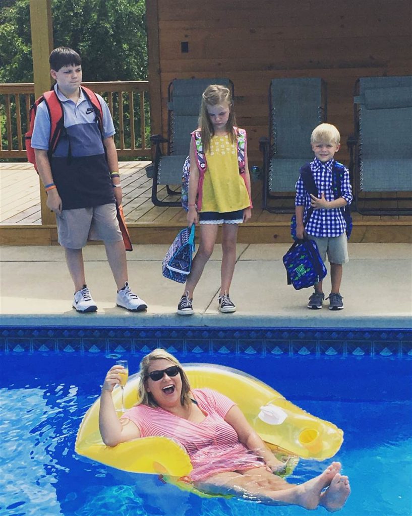暑假對於孩子們來說一開始的確很有趣,但是對於厭倦於一直聽到孩子們說「我好無聊」的母親們來說,學期即將開始絕對是一件值得慶祝的事情。在這樣開心的時刻,北美全國的母親正在以拍下開心的照片代替舉辦孩子即將回到學校的派對,來表達他們無法言喻的好心情。