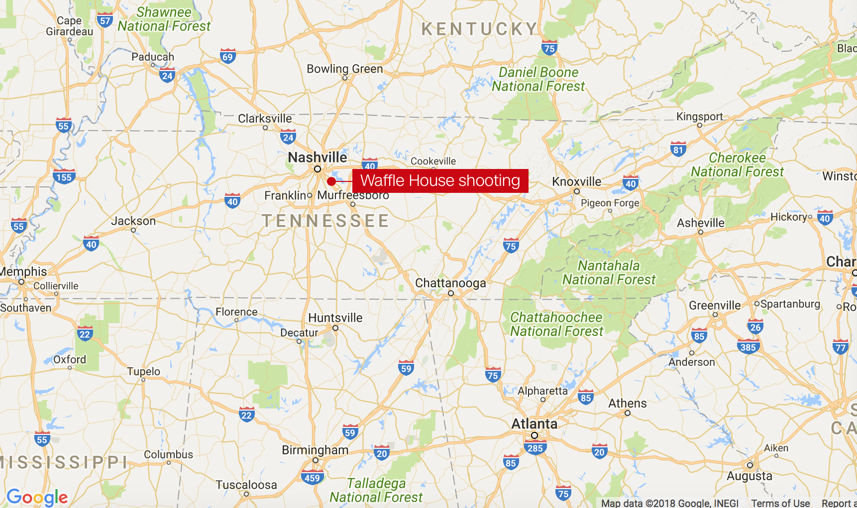 資料來源:Tennessee Waffle House shooting suspect may be armed, police say
