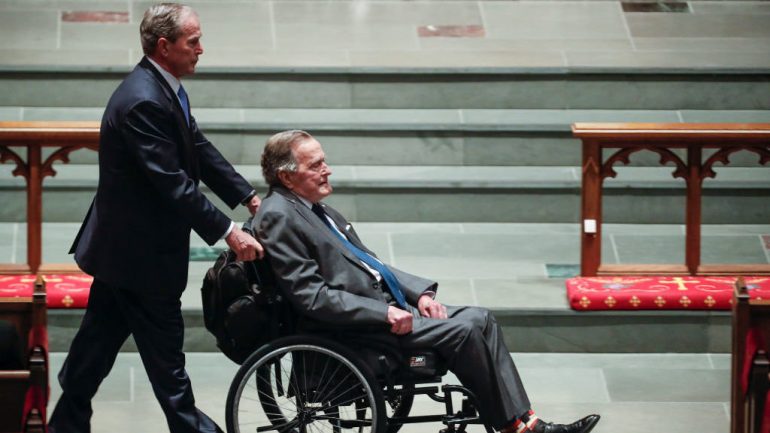 老布希近幾年來也受疾病所苦,之前曾因肺炎和慢性支氣管炎住院。他現在也用著輪椅,因為有類似於帕金森氏症的症狀。