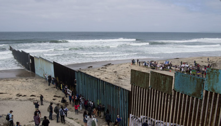 這群移民從墨西哥提華納市的友誼公園(Friendship Park)遊行到聖思多羅(San Ysidro)的入境口,並站在墨西哥這邊,另一邊就是加州聖地牙哥市。這是許多坐著拖車前來美墨邊界的移民的最後一趟旅程。
