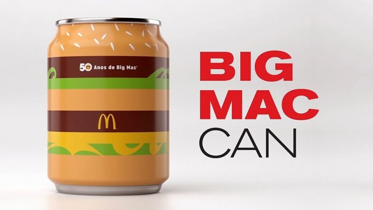 巴西廣告代理商 DPZ&T 將大麥克的外觀搖身一變,將經典的白芝麻漢堡包、生菜、起司片、特殊醬汁印到了可口可樂罐上,「五十年應該是值得慶祝的紀念日。」麥當勞拉丁美洲行銷長 Dan Gertsacov 這樣表示。