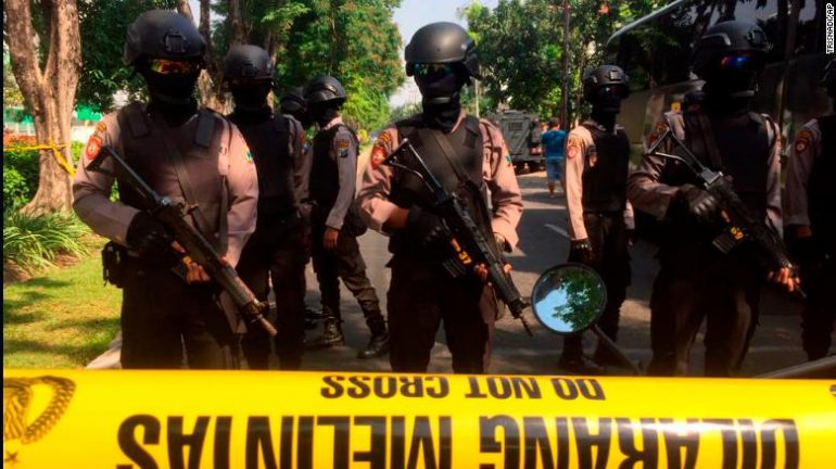 印尼警方認為,星期日早上發生在三個教會的自殺炸彈攻擊是由一對父母和四個小孩一同犯下的,一共釀成七人死亡、包括警察共四十一人受傷。印尼國家警察局局長 Tito Karnavian 表示,四個小孩中包括九歲和十二歲的兩個女孩。