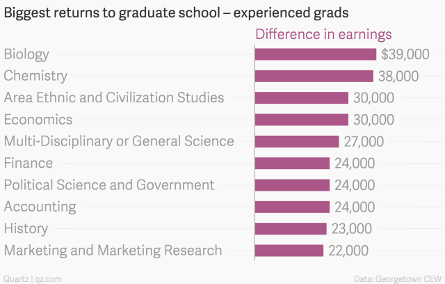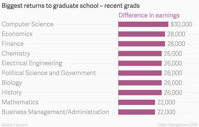 資料來源:Ranked: The salary bump you can expect from a graduate degree, by major