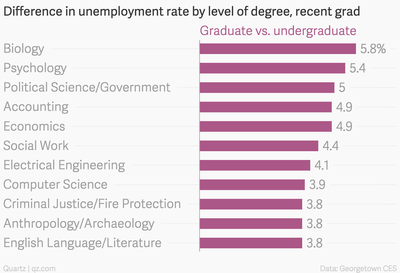 在金融危機之後,對於剛剛畢業的美國大學畢業生來說,事情真的很糟糕。有些學生無法找到任何工作,更不用說在他們的專業領域中工作。數年後市場已經有些不同,對於已畢業的研究生來說,失業率已經下降。雖然尚未全面復甦,但它越來越好。