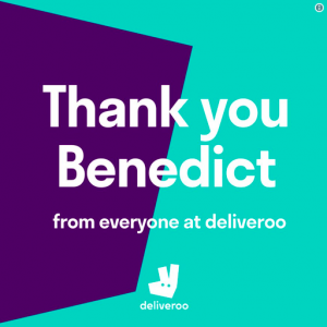 外送員所屬的外送公司 Deliveroo 在星期六一則推上感謝了康伯拜區,說他的行為非常勇敢。