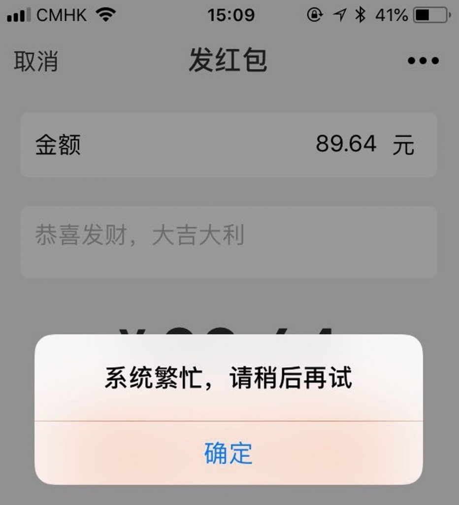 在6月4日,如果想發送相關數字的微信紅包,也可能出現「系統繁忙,請稍候再試」的提示。