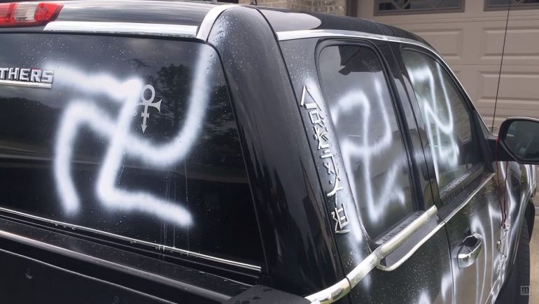 密西根州的黑人男子 Hubert Roberts Jr. 在星期二早上發現,自己的卡車輪胎被刺破,車體上更被噴漆了卍符號和種族歧視詞彙。他認為這是一場仇恨犯罪。