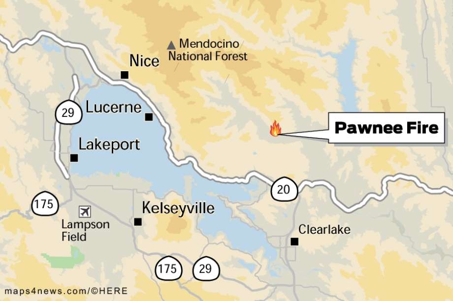 週六晚上開始的大火到週日晚上之時,已從450英畝燒至3000英畝,迫使位於20號高速公路附近Clearlake東北部的Spring Valley地區撤離,此社區約有3,000居民。