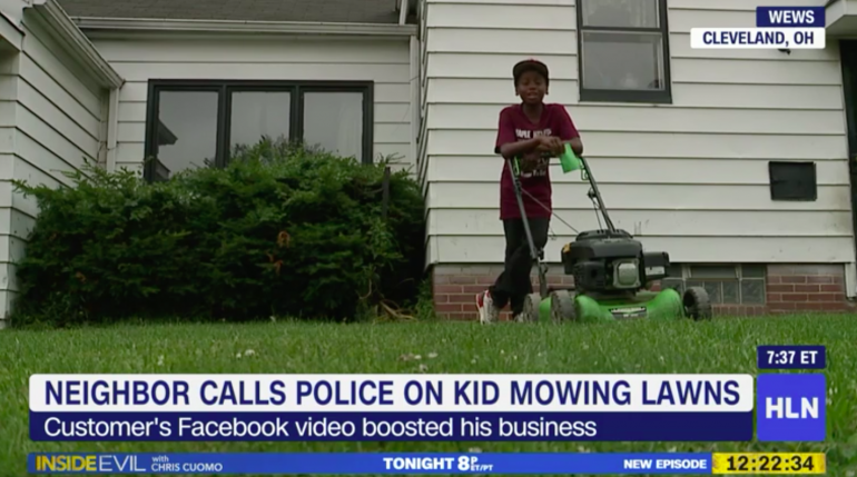 十二歲的 Reggie Fields 在克里夫蘭市一個社區做除草的生意,並找堂表弟、兄弟姐妹來幫忙。上週,當他在除草時,警察竟跑來找他們談話。雇用 Fields 的女子 Lucille Holt 表示,他們的鄰居報警,因為這些小孩不小心除到他們家的草皮。Holt 將整件事錄影下來,不敢置信地說:「就因為這些小孩不小心除到他們家草皮,他們就報警?誰會做這種事?」
