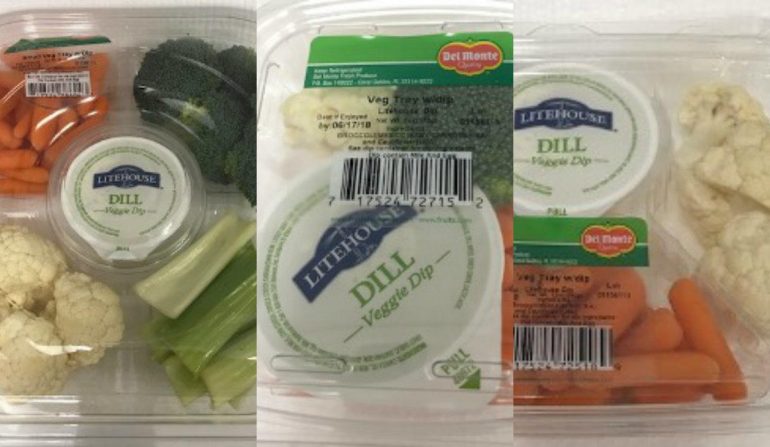 根據美國疾管局,截至 7 月 5 日,有 212 起隱孢子蟲病(cyclosporiasis)的腸道感染。起因是台爾蒙(Del Monte)的 6、12、28 盎司蔬菜盤,內含綠花椰、花椰菜、芹菜棒、胡蘿蔔、沾醬。