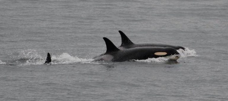 華盛頓州鯨魚研究中心表示,它觀看了被稱為J35的虎鯨,在周六下午在聖胡安島以西的哈羅海峽追逐一群鮭魚。