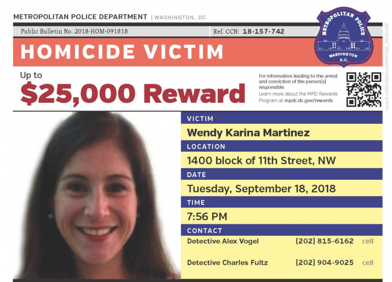 Help us identify the person responsible for the murder of Wendy Martinez. She was stabbed to death last night in the 1400 block of 11th St, NW.