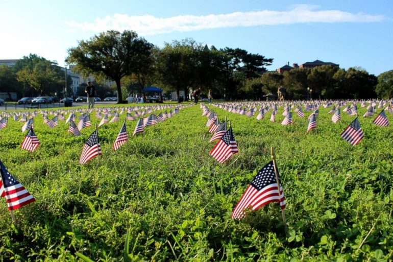 一個退休軍人服務組織於週三在華盛頓的國家廣場(National Mall)放置了5520面的美國國旗,以喚起大眾對於軍人自殺問題的意識。