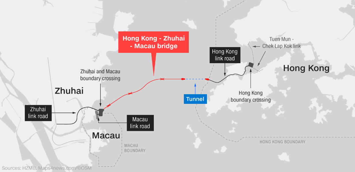 這座長達55公里的橋原本預計在2016年啟用,但因為諸多延遲才到現在才開通。跨海大橋在建造時曾經遭質疑安全標準,因為有七名工人在建造過程死亡,275人受傷。