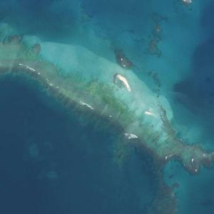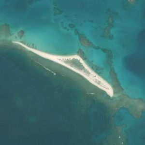 以下的圖片裡可以看到,左圖是今年五月的影像,而右圖是今年十月風災襲擊後的照片。現在只剩一小條沙灘還在海平面上,其他都沈沒在海底下了。