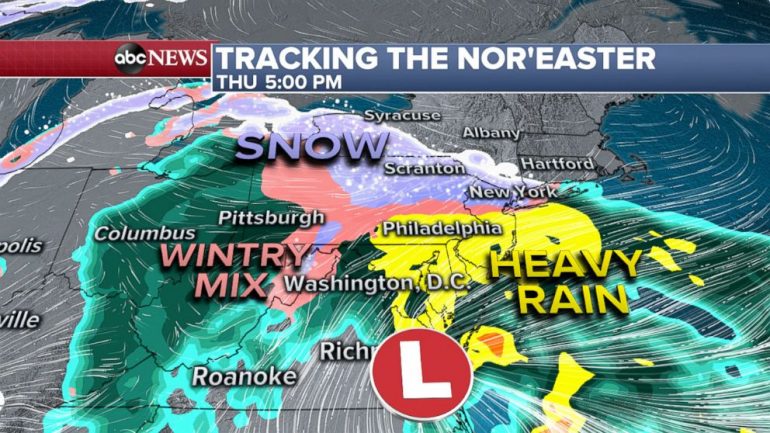 而沿著95號州際公路一路從華盛頓到波士頓的幾個大城市則可能會在週四降下凍雨。大雨也會降在從喬治亞州到維吉尼亞州海岸的東南地帶,總共有超過2,000萬人居住在有洪水警報的地區。