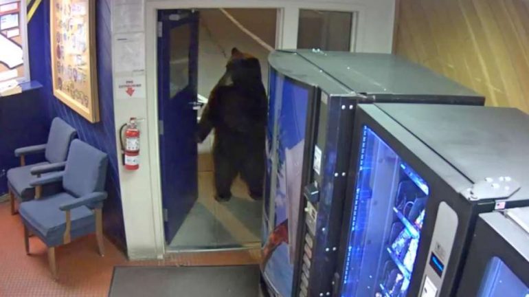 此事件發生在11月17日,在CHP發布的影片中,可以看到一隻熊先從窗戶後面偷看,然後在用後腳打開Donner Pass商用汽車執法部門的門。