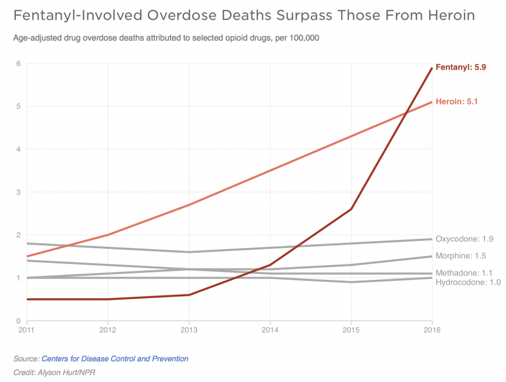 資料來源:NPR – Fentanyl Surpasses Heroin As Drug Most Often Involved In Deadly Overdoses