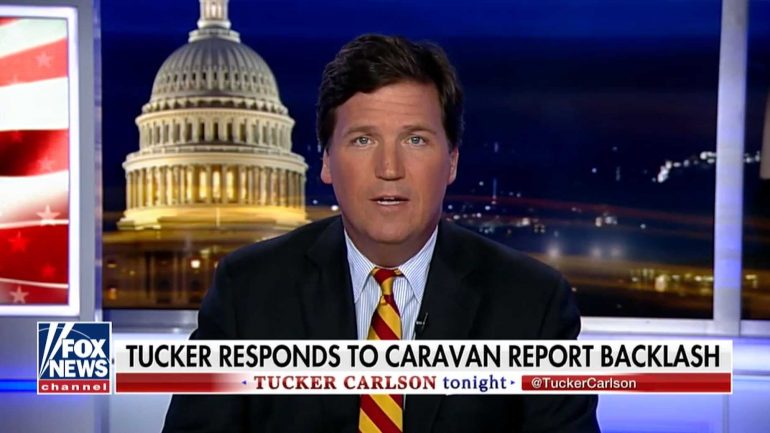 星期四單人脫口秀的開場中,卡爾森表示,「他們(領導者們)告訴我們,我們有道德義務接受世界上的窮人,即使這會讓我們國家(美國)變得又窮又髒,且更加分裂。移民是一種贖罪」。並指名眾議院民主黨領袖 Nancy Pelosi 和眾議院議長 Paul D. Ryan。