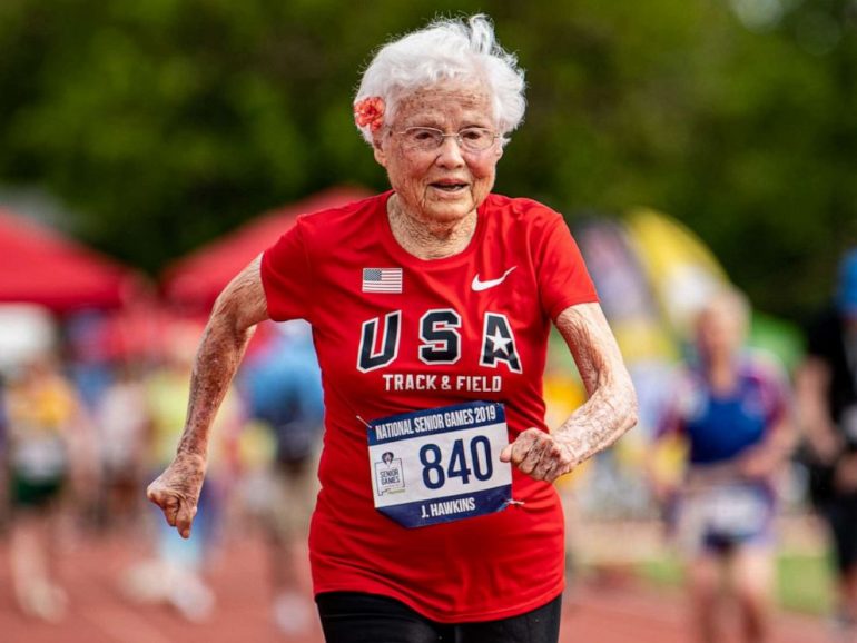 來自路易斯安那州的霍金斯,於週二參加了於新墨西哥州阿爾伯基克(Albuquerque)舉辦的長者運動會。她在「100 歲以上女子組」的組別裡,分別獲得了 50 公尺及 100 公尺短跑比賽的冠軍。