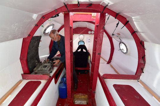 這個木桶長三公尺,寬2.1公尺,是用聚脂纖維所打造以抵抗撞擊和平衡重量,而外層則是由合成樹脂所包覆。此外,裡面還有四扇小窗戶、廚房、GPS平板電腦、汽油引擎,及帶有綁帶的棉被,這樣當他遇到急遽的海流時就不會滾落。