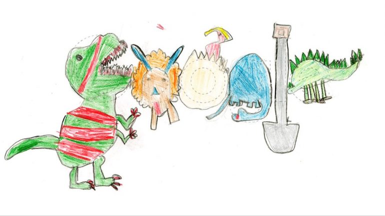 今年的塗鴉比賽主題是「什麼啟發了我」(What inspires me…)。莎拉的圖畫以恐龍身體的形狀,拼出了Google六個字。她告訴Google,恐龍啟發了她,因為她長大以後想要當古生物學家。