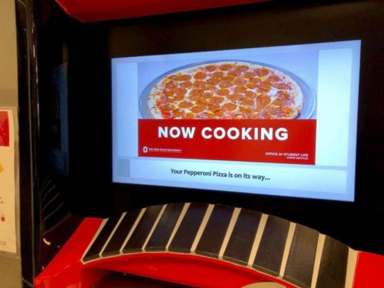 拜最新的高科技「披薩 ATM 」所賜,俄亥俄州立大學的學生只要在螢幕上輕鬆點選,即可享用熱騰騰的披薩。