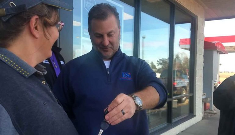 「我今天要給妳個驚喜。我們都能有美好的一天。」艾利斯告訴安德森,「這裡有所有權狀和鑰匙。那台黑色的車是妳的了。我要把它給妳!」安德森一開始還不敢置信,後來才哽咽地說:「天啊,謝謝你。上帝保佑你。」