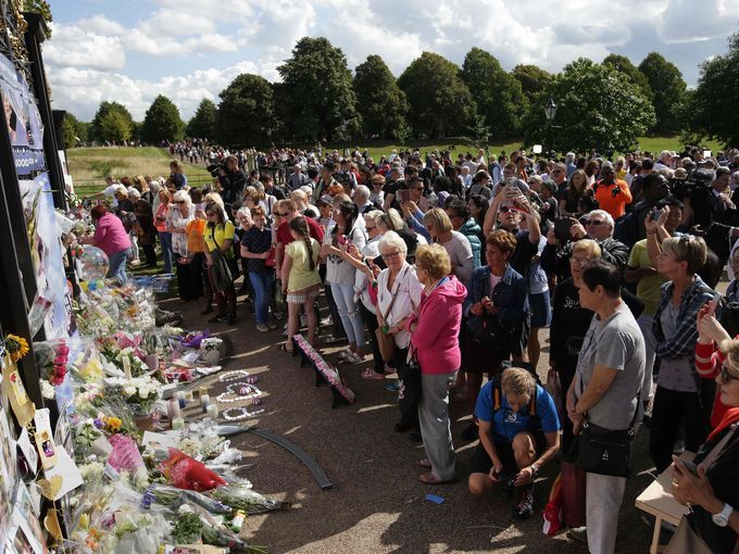 黛安娜王妃逝世於 1997 年 8 月 31 日,「人民王妃」的逝世震驚了全球,也讓許多人傷心不已,兒子威廉王子(Prince William)及哈利王子(Prince Henry)皆來到倫敦肯辛頓宮,向母親與母親的悼念者致意。