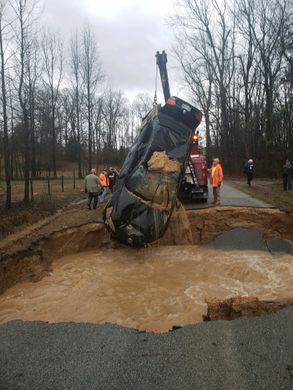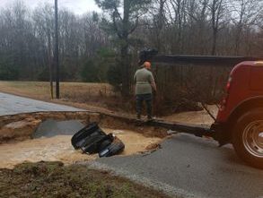 週六,田納西州一條馬路上竟忽然出現「路陷」(sinkhole)並吞噬了一台轎車,所幸車上的三名乘客都及時逃出車外、沒有大礙。