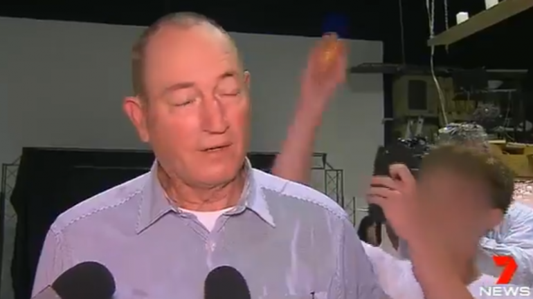 Controversial Independent Senator Fraser Anning has been caught on camera punching a young protester after the boy cracked an egg on the back of his head at an event in Moorabbin. A 17-year-old boy was arrested and released without charge pending investigation. #auspol #7News pic.twitter.com/lbXLDwfS96