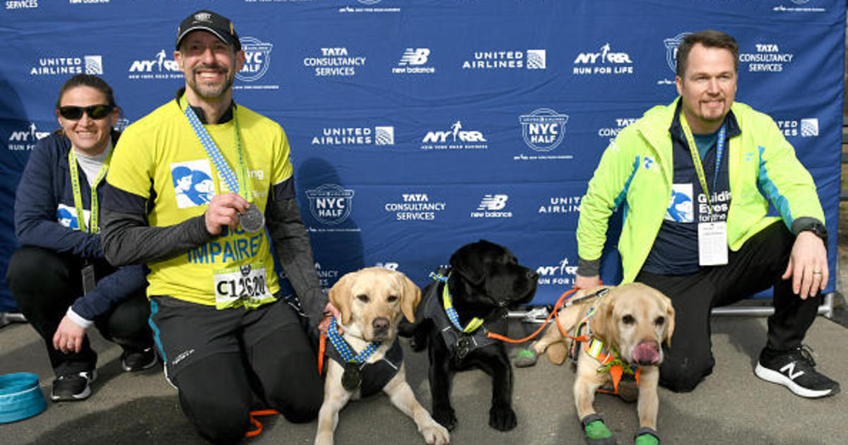 帕尼克是非營利組織「Guiding Eyes for the Blind」的 CEO,這個組織數十年來都在訓練導盲犬,以幫助盲人。帕尼克的三隻拉布拉多導盲犬在 13.1 英里的賽程中輪流為他領跑,最後帕尼克以 2 小時 21 分鐘的成績完賽。「這真的就像是一個團隊。」他說。