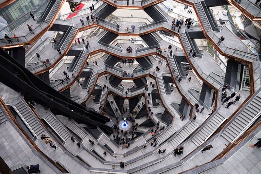 這棟綜合大樓裡共有 100 家商店、25 家餐廳、4,000 間公寓,以及 100 萬平方公尺寬的辦公區域。此外,內部還有許多吸睛的大型裝置藝術,其中最讓人印象深刻的莫過於那於空中互相連接的 154 階蜂窩狀螺旋樓梯「Vessel」。