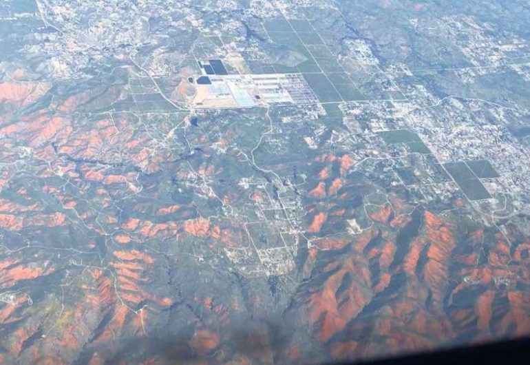 3月15日中午,一民眾在洛杉磯國際機場搭乘飛機,起飛後看到加州罌粟花盛開,橘色花團到處都是。從飛機上空拍Lake Elsinore小鎮為中心散開的「超級盛開(super bloom)」景象,可能觀看野花的最佳方式。該鎮吸引了如迪士尼樂園一般的大批人潮,使得當地官員在星期天短暫關閉野花觀賞區。