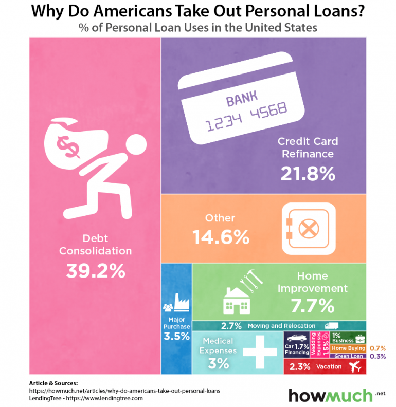 - 購買個人貸款的兩個最常見的原因是鞏固債務和再融資信用卡餘額,這也是美國負債問題更嚴重的問題。