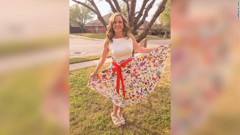 資料來源:CNN−A Texas elementary school teacher has turned her students’ artwork into a dress