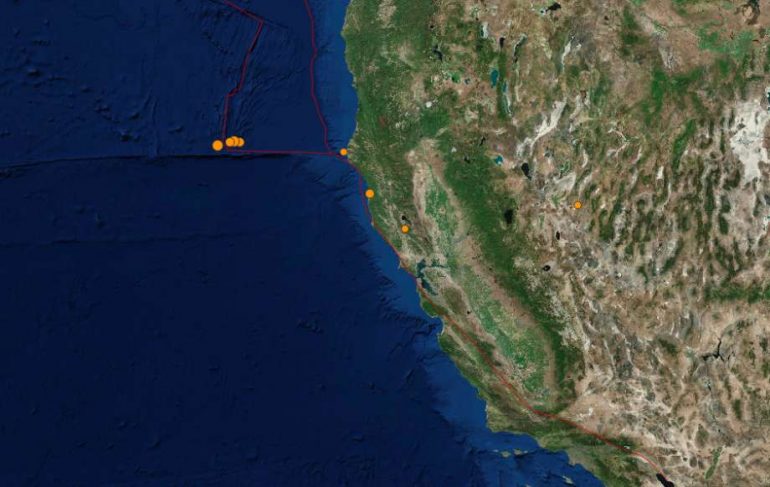 北加州沿岸在24小時內發生7起規模超過2.5以上的地震。