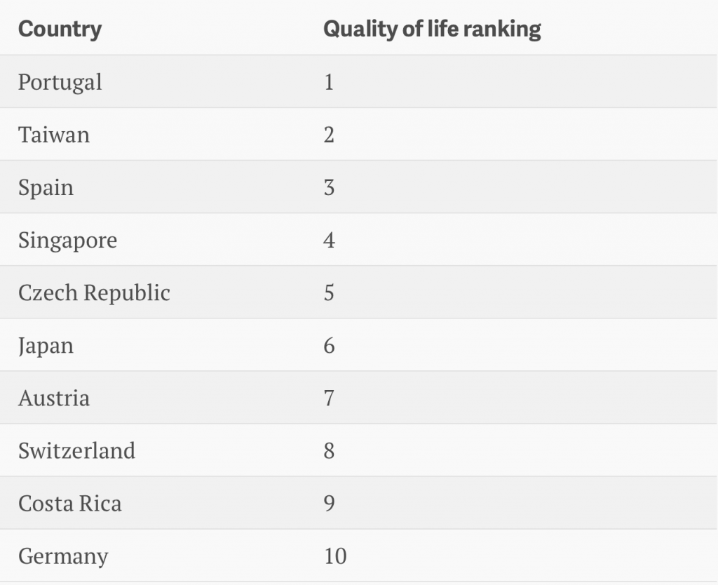 根據世界上最完整的報導之一「Expat 2017」,葡萄牙擁有世界上最好的生活品質,而台灣奪得第二。 InterNations網路團隊進行調查,有13000名受訪者,共有166個國籍的受訪者評估。