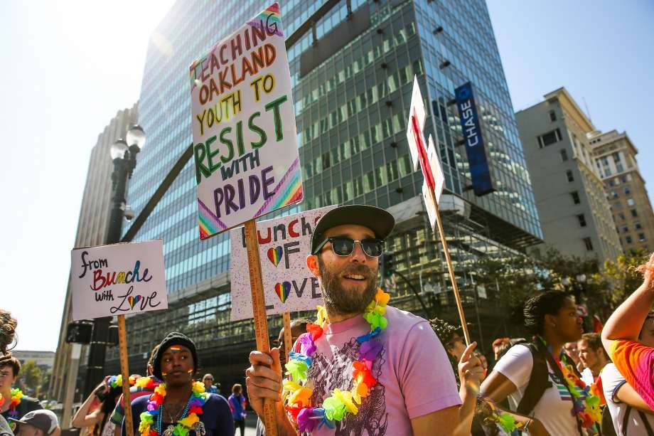 資料來源:Cheery, colorful Oakland Pride day draws thousands, puts politics aside
