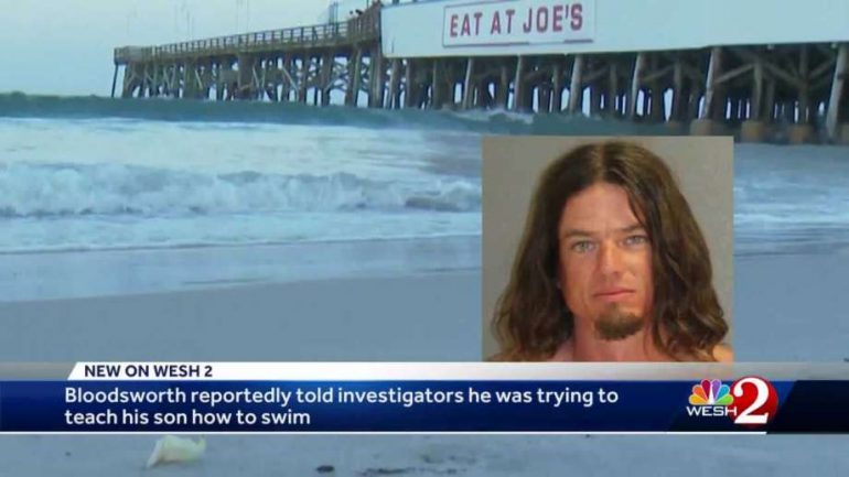 從 Daytona 海灘的主街碼頭跳水是違法的,但目擊者指出這名父親 John Bloodsworth 在星期一晚間將他的小孩丟在碼頭附近的海邊,讓小孩自己學游泳。目擊者 Mitch Brown 說:「我看到就想說:『不行,我不能看到這樣下去。』所以我就走去碼頭、走到岸邊,告訴他我的來意。」