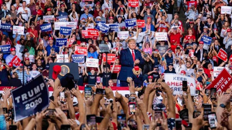 川普在演講中批評民主黨,並將對手描述為「法西斯和納粹分子」後被抗議者打斷。幾秒鐘後,川普就開始對抗議者的體重進行攻擊,並向支持他的人稱這樣子的言論是「出於善意」。