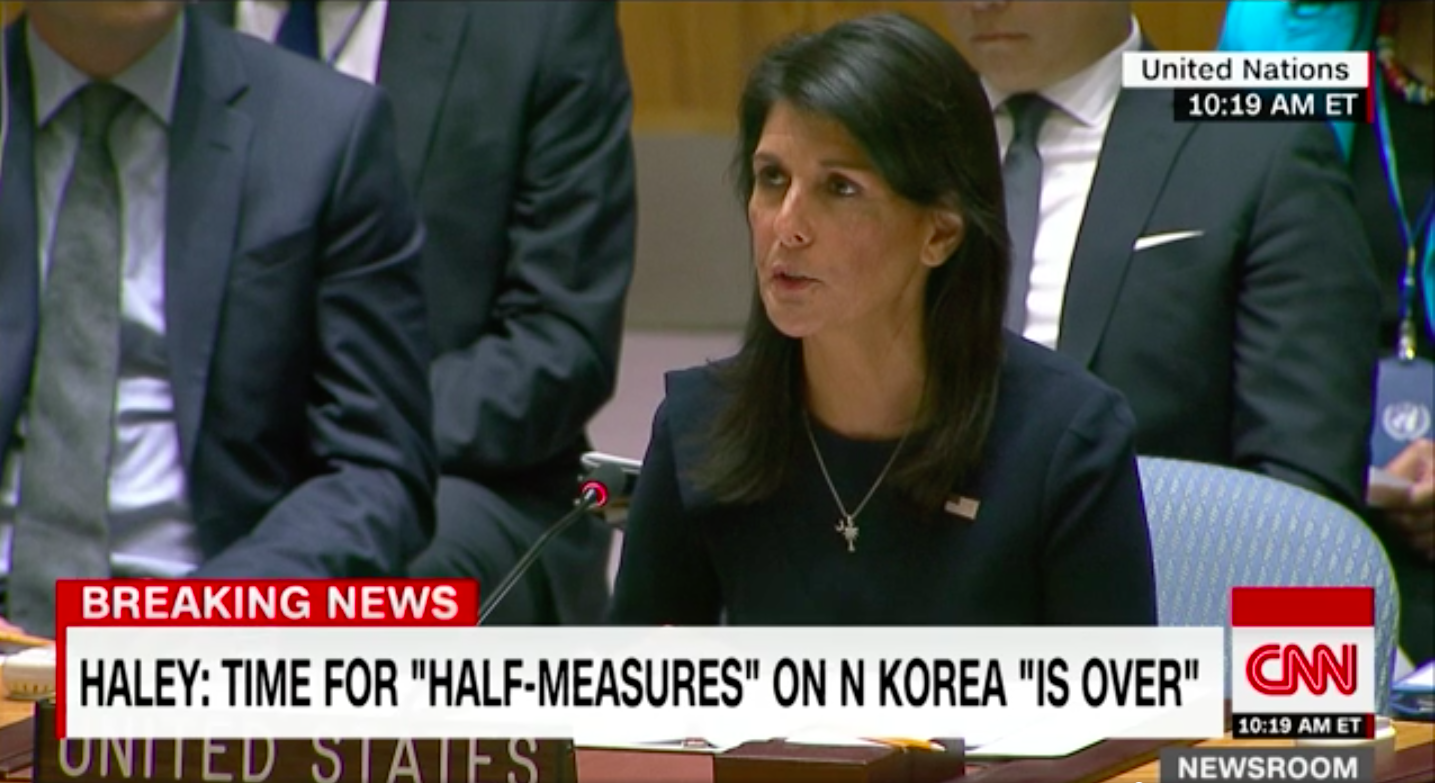 ▲美國駐聯合國大使Nikki Haley前陣子在聯合國發表強調對北韓實施制裁的必要性