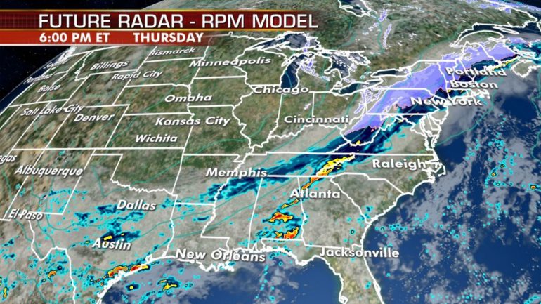 國家氣象局(National Weather Service)表示,未來幾天內,源自北極的冷氣團將席捲美東三分之二的地區,週三將在南部平原帶來大雨,然後預計到週四時,新英格蘭內部將出現中雪 。