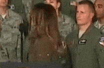 The US First Lady introduces her husband on stage at an event at Joint Base Andrews. He thanks her with a handshake. pic.twitter.com/fPQNoMpnWa