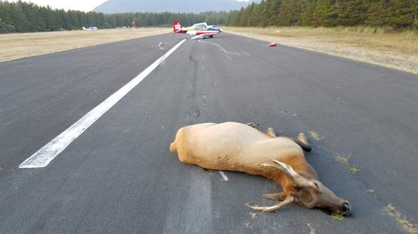 俄勒岡州的警察在週六時接獲一起小型飛機事故的報案,在Nehalem Bay State Park的簡易機場內,一架飛機降落時撞到麋鹿,造成機上雖然無人傷亡,但是兩隻麋鹿死亡。